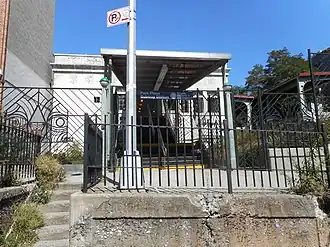 During 1905–1906, this portion of the line was rebuilt as a raised elevated railway and embankment structure,[3] and a new station was built at this location, with a single floor-level island platform and a station house between the tracks. The new station was located with the station house over Park Place and the platform extending north from that point.