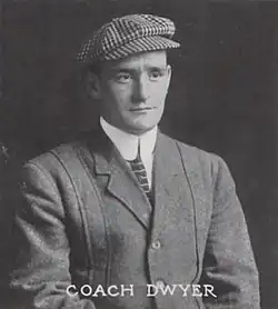 Dwyer began his coaching career in 1908 at Auburn University. From 1911 to 1913, he was the head coach at Louisiana State University. In 1914, he returned to his alma mater as an assistant coach. In 1918, he succeeded another Penn alum, Byron W. Dickson as head coach of Scott High School in Toledo Ohio.[7] In 1919, Scott competed in the high school football national championship game, where they played Everett High School of Everett, Washington to a 7–7 tie.[8] In 1922, he became the line coach at the University of Detroit.[9]