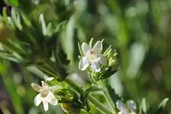 Penstemon sudans is a species of penstemon known by the common name Susanville beardtongue. It is native to northern Nevada and northeastern California, especially in the vicinity of Susanville, where it grows in scrub and forest habitat, often in rocky soils. It is a glandular, sticky perennial herb growing erect to a maximum height over half a meter. The toothed, oval leaves are 3 to 6 centimeters long. The inflorescence bears tubular flowers with wide mouths each divided into a double-lobed upper lip and a triple-lobed lower lip, the whole flower about a centimeter in length. It is cream-colored with dark-red lines.