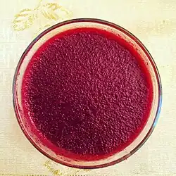 Pepeçura is a sort of pudding in the Turkish cuisine, especially of the eastern Black Sea Region, made of grape must mixed with flour and boiled until thick. It may also include almonds, walnuts, and other nuts.