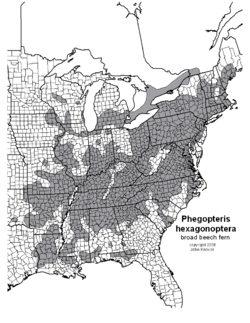 - ^ a b "Phegopteris hexagonoptera (Broad Beech Fern, Southern Beech Fern)". NC State Extension Plants. North Carolina State University. Retrieved 2025-06-25.