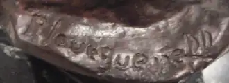 Many of his works were cast in bronze at the Susse Frères foundry in Paris. A number of these works, particularly some statuettes, were exhibited in bronze at the Salon where he started participating regularly in 1880. This is the case with 'Loys, comte de Nassau', an equestrian statue (1884), 'Veneur a cheval du XIVe siècle' (1885), 'Le Patron' (1886), 'Francarcher due XVe siècle' (1887), 'Etalon percheron' (1890), 'Gardeuse d'oies' (1891), 'Madame X. a cheval' (1893), 'Red Lancer' (1895), 'Cavalier de 1806' (1899), 'Le Vieux', equestrian group and 'Temeraire III, pur-sang' (1903), 'Pierre-le-Grand a cheval' (1906), 'Jument pouliniere pur-sang' (1907), 'Mademoiselle V. Nimidoff, de l'Opera' (1908) and 'Alexandre III de Russie,' an equestrian statue for the museum of St. Petersburg (1910).[3]