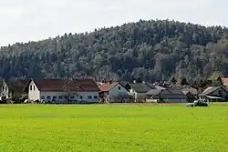 Poljane consists of a cluster of houses on the east side of the railroad from Ljubljana to Jesenice.[1][3]