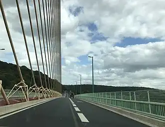 - Carriageways lie 50 metres (55 yd) above the Seine (maritime clearance)
