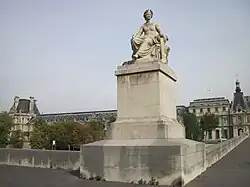 Begun in 1831 in the prolongation of the rue des Saints-Pères[1] on the Left Bank, the original bridge was known under that name until its inauguration, in 1834, when king Louis-Philippe named it Pont du Carrousel, because it opened on the Right Bank river frontage of the Palais du Louvre near the Arc de Triomphe du Carrousel in front of the Tuileries.