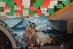 Mural depicting the legend of Popocatepetl and Iztacihuatl inside the municipal palace of Atlixco, Puebla