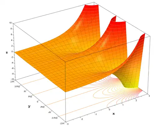 | August 2008 | .png) | The exponential function is one of the most important functions in mathematics. It can be written in the form , where e is a mathematical constant, sometimes known as Euler's number. The exponential function exists for any complex number. Plotted above are the real part (left) and the imaginary part (right) of various values of the exponential function in the complex plane. | Exponential function | |