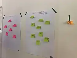 Post-it notes can be used in design teams to offer up personal ideas, assist in group activities like brainstorming, and support design thinking and design outcomes.[4]