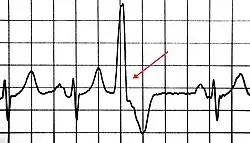 | A premature ventricular contraction marked by the arrow | |