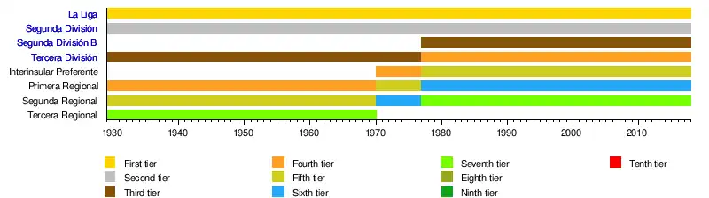 The Interinsular Preferente de Tenerife is the top tier of Tenerife football, with two leagues, the Primera Interinsular Tenerife and Segunda Interinsular Tenerife sitting below it. Clubs that achieve promotion from the Tenerife Preferente go to the Canarian Islands group of the Tercera Division RFEF.
