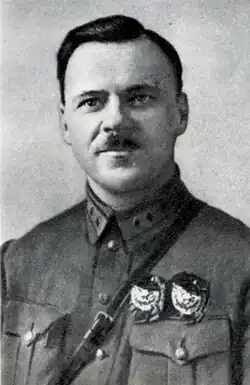 Pyotr Mikhailovich Filatov (Russian: Пётр Михайлович Филатов; 18 August 1893 – 14 July 1941) was a Red Army lieutenant general. A veteran of World War I, Filatov rose to brigade command during the Russian Civil War and was decorated for his actions. He held division command in the 1920s and 1930s between military education and served as a corps commander and deputy commander of an army and a front in the late 1930s. Shortly before the beginning of Operation Barbarossa in June 1941, he became commander of the 13th Army in Belarus, which suffered heavy losses in the opening weeks of the war. He was mortally wounded in an air raid on 8 July and died a week later.