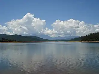 Quảng Nam comprises flat land along the coast and increasingly high elevations towards the west, with the highest elevations along the border to Laos and Kon Tum province. The highest peak is Ngọc Linh mountain at 2598m.[9] In contrast to the other provinces of the South Central Coast there are no hills or mountains near the coast[9] (with the exception of the Chàm Islands with a peak of 517m).