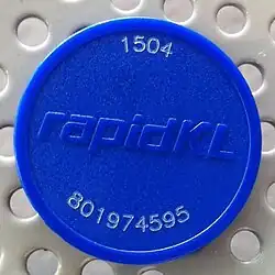 Rapid Rail implements an automatic fare collection system with stored value tickets and single journey tickets in the form of tokens. Tickets can be purchased either from ticket vending machines or at station counters found at all train statioms stations.[21] Turnstiles are located at the entrances to train platform, which separate the paid area and unpaid area of the stations. In 2011, Prasarana Malaysia announced a new ticketing system, effectively integrating the different rail lines which previously functioned as different systems. The new system allowed passengers to transfer seamlessly between rail lines at designated interchange stations without exiting the system and paying multiple fares or buying new tokens.[22]