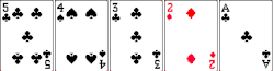 Players want to avoid making pairs and should evaluate other door cards in relation to the strength of their hand. A player's hand is much stronger if there are cards of the same denomination already showing (less chance of pairing up on a draw) and weaker if there are "make" cards (cards that would allow them to make their hand) visible. For instance, Jane holds 3-4-5 and sees four "dead" door cards of 3-4-4-5 behind her. This is a strong hand, as the likelihood of pairing her hole cards is now greatly diminished. Another example: A-6-7 is a much stronger hand when other players are showing Aces, 6s and 7s than when these players are showing the make cards 2s, 3s, 4s and 5s.[11]