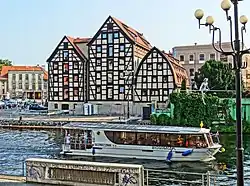 After 1990, the museum was taken over back by municipal authorities. From 1993 on, several granaries across the town have been used: those on the Brda river welcome exhibitions related to the history of Bydgoszcz,[6] while in the White Granary on Mill Island (Polish: Wyspa Młyńska), a permanent craft exhibition has been presented. Between 1993 and 2006, a major renovation was carried out upon the granaries in Grodzka street, while the refurbishment of the buildings on Mill Island were covered by the program of Renovation of cultural heritage facilities on Mill Island (2006-2008).[8]