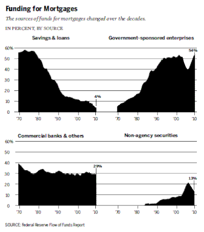 {{cite book}}: CS1 maint: location (link) - ^ "an incredible 77 percent of the mortgages being made in America are guaranteed by Fannie and Freddie", The End of Fannie and Freddie?| By JOE NOCERA| nytimes.com| June 26, 2013