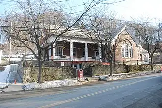 Anna L. and Levi P. Morton, who owned the nearby Ellerslie estate, constructed and endowed the Morton Memorial Library in Rhinecliff in memory of their daughter Lena. It was dedicated as a library in 1908.[6]