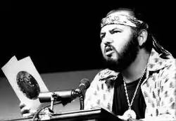 Ricardo Sánchez (29 March 1941 – 3 September 1995) was a writer, poet, professor, and activist. Sometimes called the "grandfather of Chicano poetry," Sánchez gained national acclaim for his 1971 poetry collection Canto y Grito Mi Liberacion.[1][2] Incarcerated in his twenties for stealing money to feed his struggling family, Sánchez read extensively and even learned Hebrew while at Soledad Prison in California.[3] Upon his release in 1969, his poems were included in a poetry anthology. In 1971, his first solo collection of poetry was published, establishing Sánchez as one of the nation's most important Chicano poets.[2][4][5]