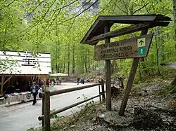 Rinka Falls (pronounced [ˈɾiːŋka]; Slovene: slap Rinka) is a waterfall in the Logar Valley, in the Municipality of Solčava in northern Slovenia. It is the source of the Savinja River. It has been proclaimed a natural heritage feature. Rinka Falls is one of the most beautiful and best-known waterfalls in Slovenia. It is also a popular tourist destination. With its drop of 105 metres (344 ft), it is the highest of the 20 waterfalls in the Logar Valley. The longest step has a length of 90 m (300 ft). It is visited in all seasons of the year. In the winter it is popular with ice-climbers.