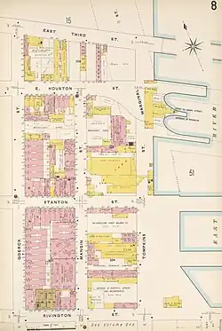 The Rivington Street municipal bath was the first bathhouse built with public funds in New York City.[1] It was constructed on the Lower East Side of Manhattan, which was a densely populated and poor area.[2] in 1900. Costing $100,000, a large sum for the time, the baths officially opened on March 23, 1901. The bath was patronized largely by Hebrews, Hungarians, and Russian Jews.[3] The cost was on par with other bathhouse projects.[4]