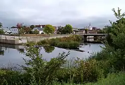 Besides the main downtown part of Rochester, there are two other named communities of significance within the city limits. East Rochester, a small neighborhood, is located near the northeastern border of the city along routes 202 and 11, next to the Salmon Falls River, while Gonic (from the Native American name Squanamagonic) is located south of downtown along NH 125 at a dam on the Cocheco River.