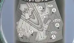 On the premise that the real world itself was a product of mixed design, Yamaga believed that the sense of alternate reality in Royal Space Force would be strengthened by inviting as many designers as possible to participate in the anime.[111] By September, the worldbuilding of Royal Space Force proceeded forward by a system where designers were free to draw and submit visual concepts based on their interpretation of Yamaga's script; the concept art would then be discussed at a daily liaison meeting between Yamaga and the other staff.[112] Yamaga used "keywords" given to the designers as a starting point, divided into what he termed "symbolic" and "non-symbolic" categories. The director sought to avoid "symbolic" premises where possible; as an example of the difference, Yamaga stated that a "symbolic" way to describe a "cup" would be to call it a "cylindrical object", whereas he preferred the designers start from "non-symbolic" terms that described a cup's function or sensory impressions from use, such as "it holds water," or "it's cold and sweats when filled with water."[113]