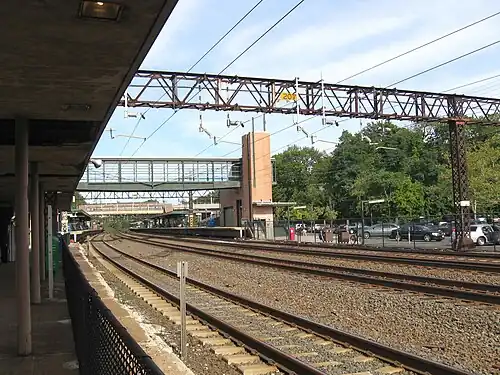 Rye station is a commuter rail stop on the Metro-North Railroad New Haven Line, located in the city of Rye, New York. The station has two side platforms, each ten cars long, serving the outer tracks of the four-track line.[4]: 19