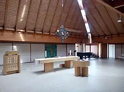 Søreide Church (Norwegian: Søreide kirke) is a parish church of the Church of Norway in Bergen Municipality in Vestland county, Norway. It is located in the Søreidegrenda neighborhood in the city of Bergen. It is the church for the Søreide parish which is part of the Fana prosti (deanery) in the Diocese of Bjørgvin. The white, wooden church was built in a fan-shaped style in 1973 using designs by the architect Helge Hjertholm. The church seats about 300 people, although by moving some folding walls, it can expand to fit an additional 300 people.[1][2][3]