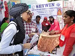 Since 2007 SETWIN has extended its services from Hyderabad to districts to improve self-employment opportunities in rural areas.[2] The 32nd and 33rd training centres of SETWIN were inaugurated at APSP 10th Battalion, Mahaboobnagr District and 2nd Battalion at APSP, Kurnool District.[3] In July 2015 SETWIN started the "Eeyoumin" scheme for students from poor minorities and as well providing placements to students who successfully complete their course and who enrol in the scheme. Students get free admission in the 16 different courses at different SETWIN training centres. This scheme was started by SETWIN in collaboration with the Department of Youth services and the Minority welfare department.