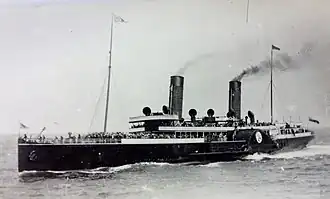 The decision did not meet with universal approval; the Isle of Man Times of Tuesday January 19, 1897, disregarding sentiment and citing practicality, stated in an editorial that it thought it better to use the name Douglas, as it would be more easily recognised by passengers.[2] In addition it was leveled that the decision had been taken by English shareholders, who formed the majority of the Company's shareholding.[3] With the decision on the vessel's name decided, the launch date was initially fixed for February 18, 1897 – the christening ceremony to be performed by Mrs Margaret Mylrea, wife of Chairman of the Isle of Man Steam Packet Company, John Allen Mylrea.[4][5][6]