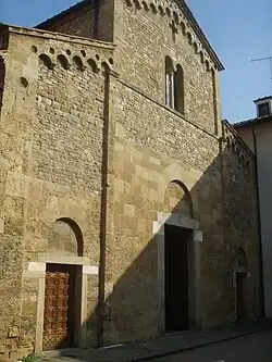 It was consecrated in 1133 but previously it had been already used as the seat of the most important notary act of the Pisan commune. It was built in a Pisane-Romanesque style in stone. The façade is divided in three parts divided by pilaster strips, with a mullioned window and arches in the upper part which continues on the whole exterior. Notable is the typical local decoration with Islamic ceramic basins (bacini) from the 10th-11th centuries (copies; the original are in the Museum of St. Matthew in the city).
