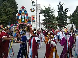 Another dance is La Trenza, danced only Mondays in Lord of the Chapel fair, using a colored pole with braided ribbons along with marching band music.