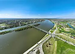 The largest city of Bosnia-Herzegovina on the river is Brčko, whose urban population is estimated at 40,000.[65] Other cities along the river, with populations of 20,000 and larger, are Slavonski Brod (53,473), Šabac (52,822), Sremska Mitrovica (37,586), Kranj (35,587),[66] Sisak (33,049),[61] Obrenovac (24,568),[67] and Bosanska Gradiška (est. 20,000).[68]