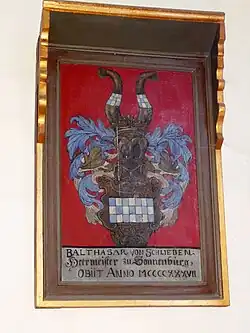 Schlieben is the name of an old German noble family, who can trace it's ancestry back to 1144 in Niederlausitz. They held the title of Count in Prussia and were also part of the nobility of Saxony.