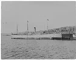 Schwabacher's Wharf, site of the city's first customs house and first bonded warehouse[4] had the good fortune to be the only wharf on Seattle's Central Waterfront to survive the Great Seattle Fire of 1889.[4][8] The arrival of the Portland at Schwabacher's Wharf in July 1897, with its "ton of gold", is usually counted as the start of the Yukon Gold Rush, from which the Schwabachers profited greatly as outfitters.[4][15][16] Schwabacher's Wharf was also the terminus for Seattle's first shipping trade route to the Orient, connecting to the Great Northern Railway.[4]