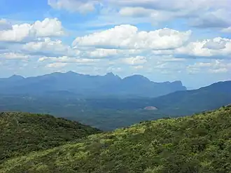 The Serra da Baitaca State Park is divided between the municipalities of Piraquara and Quatro Barras in the state of Paraná (state). The larger part is in Quatro Barras, with a narrow southern extension into Piraquara.[1] It has an area of 3,053 hectares (7,540 acres).[2] It is 25 kilometres (16 mi) from Curitiba, the first major elevation of the Serra do Mar on the west side. The summit of the Serra da Baitaca has an altitude of 1,420 metres (4,660 ft). The state park is considered the most important practical mountaineering school in Paraná, and one of the most important in Brazil. The park holds the sources of the Iguaçu River, and also holds springs that supply the city of Curitiba.[3]