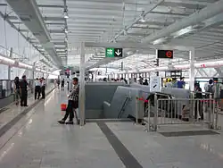 Shenzhen North Railway Station (Chinese: 深圳北站; pinyin: Shēnzhèn Běi Zhàn; Jyutping: sam1 zan3 bak1 zaam6) is one of the four large intercity railway stations of Shenzhen, located in Longhua District.[2] It has 11 platforms and 20 lines. It is an interchange station between the Guangzhou–Shenzhen–Hong Kong Express Rail Link, the Hangzhou–Fuzhou–Shenzhen High-Speed Railway, future Shenzhen–Zhanjiang high-speed railway[3] and the Shenzhen Metro Lines 4, 5 and 6.[4][5][6][7] Construction started in 2007 and was completed in June 2011.[8][9] The Line 4 and Line 5 platforms opened on 22 June 2011, CRH platforms opened on 26 December 2011 and Line 6 platforms opened on 18 August 2020.