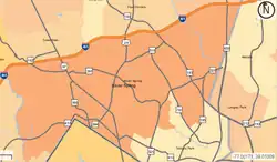 At the time, there was a community called Sligo located at the intersection of the Washington-Brookeville Turnpike and the Washington-Colesville-Ashton Turnpike, now named Georgia Avenue and Colesville Road.[27] Sligo included a tollhouse, a store, a post office, and a few homes.[27] The communities of Woodside, Forest Glen, and Linden were founded after the Civil War.[27] These small towns largely lost their separate identities when a post office was established in Silver Spring in 1899.[27]