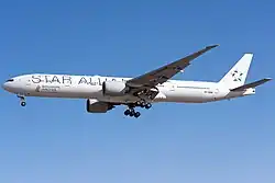 Singapore Airlines (abbreviation: SIA or SQ) is the flag carrier of Singapore with its hub located at Changi Airport. Considered to be one of the world's best carriers, the airline is ranked as a 5-star airline[4] as well as ranked as the world's best airline by Skytrax five times.[5] Singapore Airlines operates a variety of Airbus and Boeing aircraft, namely the Airbus A350-900, Airbus A380, Boeing 737 MAX 8, Boeing 737-800, Boeing 747-400 Freighter, Boeing 777-300ER and Boeing 787-10. The airline has been a member of Star Alliance since April 2000.