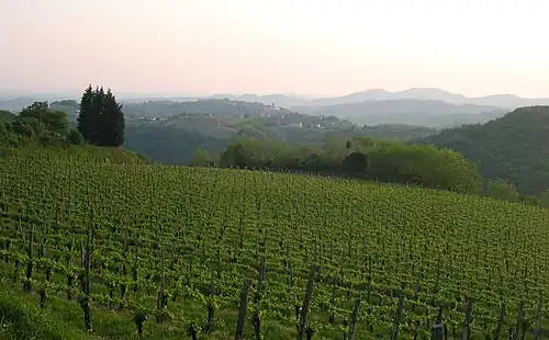 Viticulture and winemaking has existed in this region since the time of the Celts and Illyrians tribes, long before the Romans would introduce winemaking to the lands of France, Spain and Germany.[2] In 2016, a research study based on DNA profiling and historical ampelographic sources showed that two international varieties of red grape, the Blaufränkisch and the Blauer Portugieser, likely originate from the Styria region of modern Slovenia.[3]