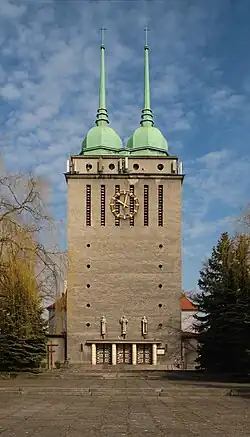 During World War II, in 1940, the Germans arrested local Polish parish priest Antoni Korczok, deported him to the Dachau concentration camp, and murdered him there the following year.[6] His successor Jerzy Jonienc was arrested in July 1941, but was released in September 1941.[6] The Germans established and operated the E22 and E452 forced labour subcamps of the Stalag VIII-B/344 prisoner-of-war camp for Allied POWs in the district.[7] After the war, Sośnica became again part of Poland.