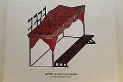 At the apex of Han society was the emperor, a member of the Liu family and thus a descendant of the founder Emperor Gaozu (r. 202 –195 BCE).[1] His subjects were not allowed to address him by name; instead they used indirect references such as "under the steps to the throne" (bixia 陛下) or "superior one" (shang 上).[2] If a commoner, government minister, or noble entered the palace without official permission, the punishment was execution.[3] Although the Commandant of Justice—one of the central government's Nine Ministers—was in charge of meting out sentences in court cases, the emperor not only had the ability to override the Commandant's decision, but also had the sole ability to draft new laws or repeal old ones.[4] An emperor could pardon anyone and grant general amnesties.[4] Although the emperor often obeyed the majority consensus of his ministers in court conferences (tingyi 廷議), his approval was still needed for any state policy decision and he sometimes even rejected the majority opinion.[5]