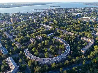 Sotsmisto (Ukrainian: Соцмісто), or Sixth Settlement (Ukrainian: Шосте селище, romanized: Shoste selyshche) is a residential neighborhood built in 1930s in Zaporizhzhia. The ensemble is built in interwar modernist and constructivist style.[1] This neighborhood is an outstanding example of a functional part of a modern industrial city that reflects values of early Ukrainian SSR.
