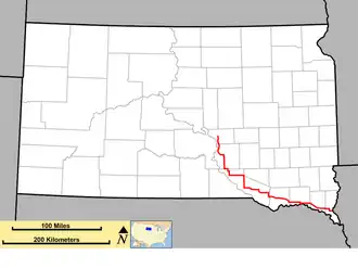 - ^ a b "State Highway Log: Mitchell Region" (PDF). South Dakota Department of Transportation. January 2012. Retrieved December 23, 2013.