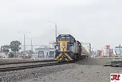 The South Kensington–West Footscray line is a railway line in the inner western suburbs of Melbourne, Australia. Linking South Kensington station on the Werribee line and associated freight terminals to Tottenham Yard and other freight lines, it is a primarily freight only line with no overhead wires, passenger stations or platforms. The most visible part of the line is where it dives under Footscray station and into a tunnel under nearby Bunbury Street.[1]