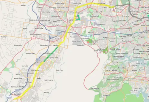 The line commences at Chullora connecting with the Metropolitan Goods line from Port Botany, passing beneath the Bankstown line from where it parallels the Main South line. Just to the north of Glenfield, the line crosses to the west of the Main South line via a flyover. It joins the Main South line to the south of Macarthur station.[2]