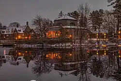 The school's rural campus is familiarly known as "Millville," after a now-abandoned mill whose relic still stands in the woods near the Lower School Pond. When St. Paul's was founded, its campus covered 50 acres.[54]: 14 Today, the campus stretches over 2,000 acres,[55] the overwhelming majority of which is undeveloped wildland and woodland. The campus itself includes four ponds and the upper third of the Turkey River.[48] In 2018, Architectural Digest named St. Paul's the most beautiful private high school campus in New Hampshire.[56]