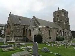 Hove developed independently of, and separately from, neighbouring Brighton, beginning as a linear village along a single street, now known as Hove Street, running from north to south. A church was established in mediaeval times, possibly around the 12th century,[3] at an isolated location in fields to the northeast of the village; access was only possible from the west. The original building was replaced with a simple Norman-style church with an aisled nave and a tower. By the 13th century a chancel had been added. This church functioned as the parish church of Hove until 1531, when the parish was united with that of Preston (to the northeast) and became the parish of Hove-cum-Preston. Although its parish church status remained, a declining population was unable to maintain it. By the 18th century the nave and chancel were crumbling; parts of the roof were removed; and the tower fell down in 1801.[4]