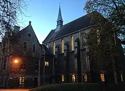 The total cost of the initial build was eight thousand pounds, a considerable sum at that time. It is said that upon first seeing the convent's new premises, the architect William Butterfield commented that it was the 'best modern building in Oxford after my college', by which he meant Keble. St Antony's acquired the former convent in 1950 after it had been vacated by the convent and Halifax House, which had occupied the premises in the immediate post war period. The building's chapel, which was never consecrated and now houses the college library, was built in the years 1891–1894 to Buckeridge's original design. The three panel paintings round the apse of the former chapel are by Charles Edgar Buckeridge.[9] The main building's undercroft, now the Gulbenkian Reading Room, was initially used by the nuns as a refectory, a role it continued to play until the completion of the Hilda Besse building in 1970.[10]