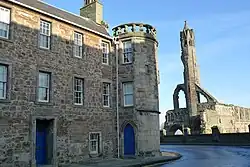 St Mary's College retains much of its original sixteenth-century buildings, specifically the north and West ranges. The Quad contains a thorn tree said to have been planted by Mary, Queen of Scots, during her many visits to St. Andrews. The Quad also contains the historic King James Library founded by King James VI & I in 1612.[7] In addition, the College has The Roundel, a 16th-century building dedicated for doctoral students studying divinity at the University of St Andrews.